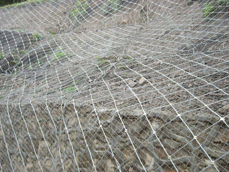 作用原理上類似于噴錨和土釘墻等面層護(hù)坡體系,但因其柔性特征能使系統(tǒng)將局部集中荷載向四周均材質(zhì):鋼絲繩網(wǎng)、普通鋼絲格柵(常稱鐵絲格柵)和TECCO高強(qiáng)度鋼絲格柵 勻傳遞以充分發(fā)揮整個系統(tǒng)的防護(hù)能力,即局部受載,整體作用,從而使系統(tǒng)能承受較大的荷載并降低單根錨桿的錨固力要求。