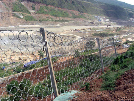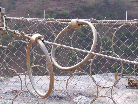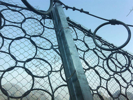 環(huán)形防護網(wǎng)采用熱鍍鋅工藝,在落石沖擊過程中能發(fā)生自身幾何形態(tài)改變、具有更為突出柔性特征的環(huán)形防護網(wǎng)來取代鋼絲繩網(wǎng),以此為基礎的攔石網(wǎng)能夠實現(xiàn)3000kJ以上的落石阻攔,并能進一步簡化結構形式(如支撐繩和減壓環(huán)的配置)、方便局部受損后的維護修復,環(huán)形防護網(wǎng)已經(jīng)成為一種替代鋼絲繩網(wǎng)系統(tǒng)的新型攔石網(wǎng)(RXI型),實現(xiàn)了SNS被動防護系統(tǒng)的更新?lián)Q代和升級。