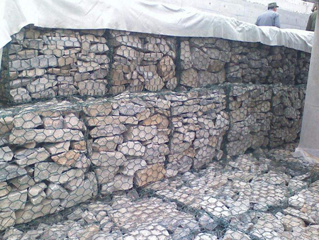 石籠網(wǎng)(格賓網(wǎng))是金屬線材編織的角形網(wǎng)(六角網(wǎng))制成的網(wǎng)箱,使用的金屬線徑是根據(jù)六角形的大小而不同。如果是金屬鍍層的金屬線六角形,則使用線徑為2.0mm到4.0mm的金屬線,如果是PVC包覆的金屬線編織的六角網(wǎng),則使用外徑為3.0mm到4.5mm的PVC(金屬)線,外框邊緣的線則使用比六角網(wǎng)線粗一號的線。